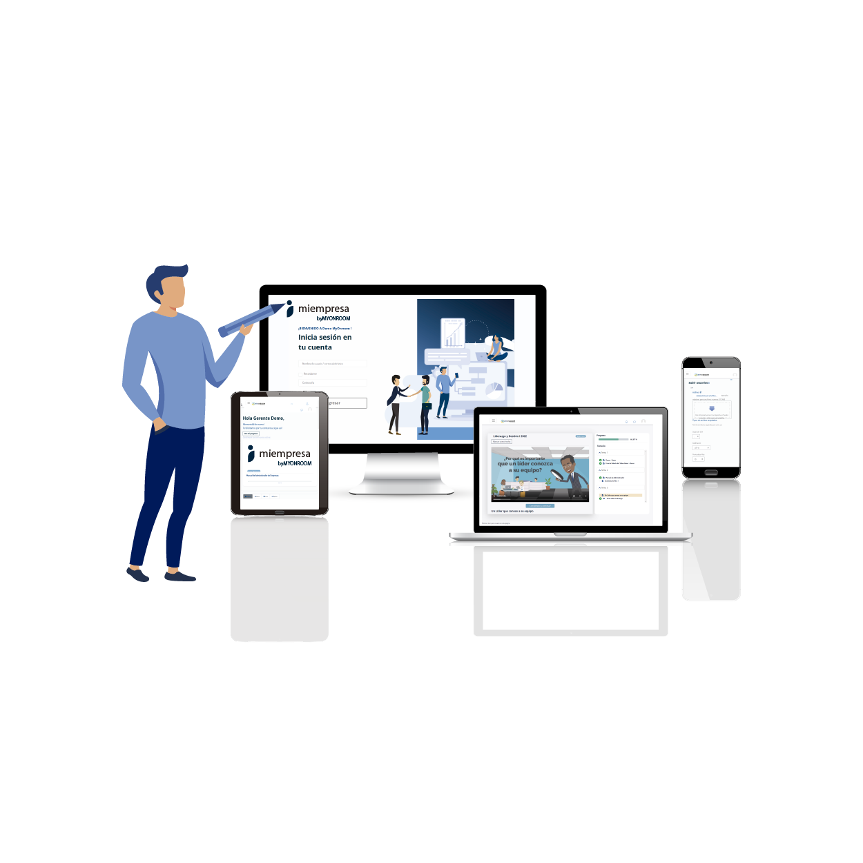 A través de MY ON ROOM las empresas podrán gestionar los procesos y planes de capacitación de todos los equipos de la empresa, con acceso ilimitado en cuanto a cantidades y desde cualquier dispositivo.